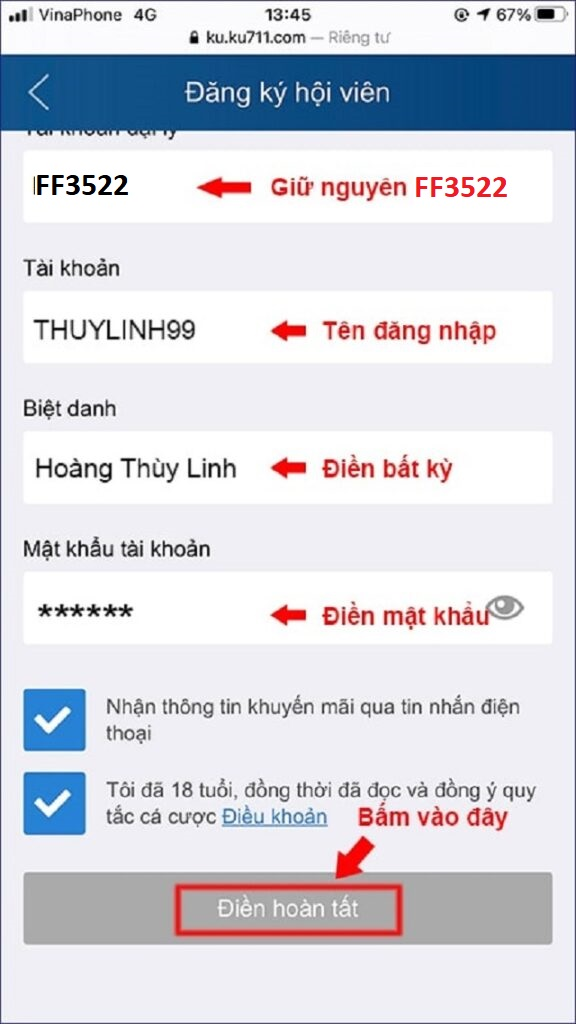 Đăng ký tài khoản tại nhà cái KU rất dễ dàng.